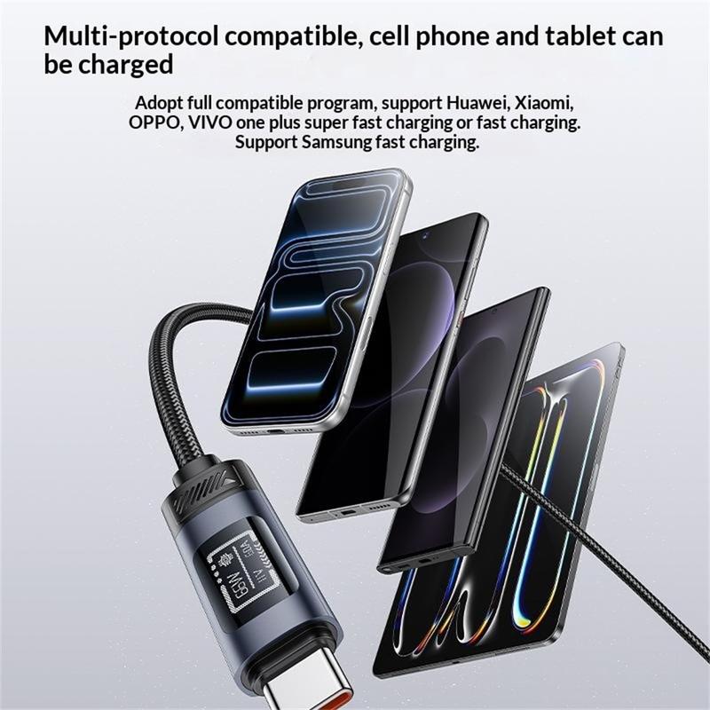 - OLED-näytöllisten kaapelien avulla käyttäjät voivat seurata latausjännitettä ja -virtaa suoraan, mikä auttaa varmistamaan, onko pikalataus aktiivinen.