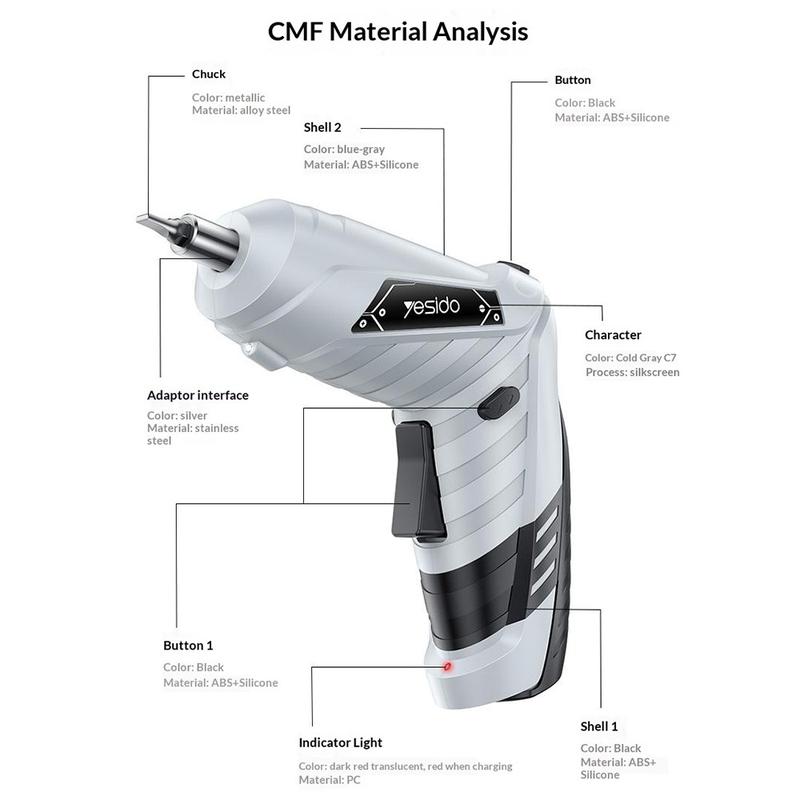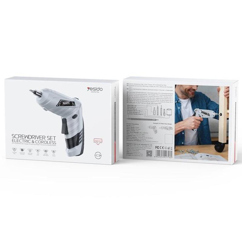 Yesido EC34 -akkukäyttöinen ruuvimeisselisarja - monikäyttöinen suora ja pistoolimallinen korjaustyökalu LED-valolla