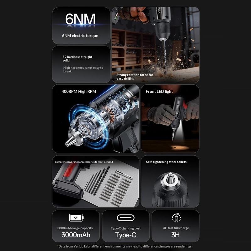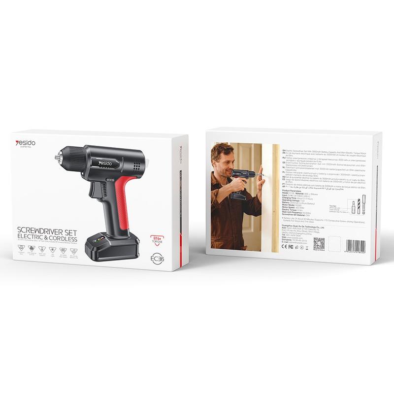 YESIDO EC36 on loistava valinta kaikille, jotka haluavat käytännöllisen akkukäyttöisen pora- ja ruuvimeisselisarjan kodin korjaus-, asennus- ja DIY-töihin. Se yhdistää kompaktin muotoilun, joustavat käyttötilat, hyödyllisen vääntömomentin ja kattavan lisävarustesarjan yhdessä paketissa. Tämä tekee siitä kätevän valinnan käyttäjille, jotka haluavat helppokäyttöisen työkalun, jolla voi hoitaa monenlaisia päivittäisiä töitä.