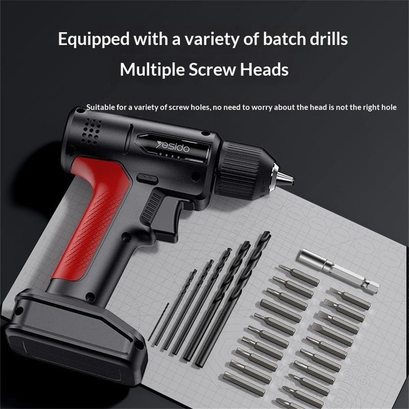 Yesido EC36 akkukäyttöinen ruuvinväännin/porakone, 3000mAh, vääntömomentti 8 Nm, kierrosnopeus 400 r/min ja LED-valo