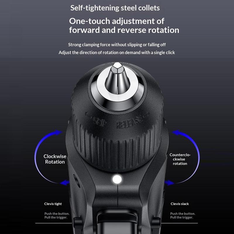 Ruuvimeisselissä on yksinkertainen yhden painikkeen ohjaus myötä- ja vastapäivään pyörimiseen, mikä helpottaa ruuvien kiristämisen ja löysäämisen välillä vaihtamista. Tämä parantaa tehokkuutta kokoonpano-, korjaus- ja huoltotöissä, erityisesti kun siirrytään nopeasti tehtävästä toiseen. Intuitiivinen ohjausasettelu tekee työkalusta sopivan sekä kokeneille käyttäjille että niille, jotka haluavat käytännöllisen työkalun jokapäiväiseen käyttöön.