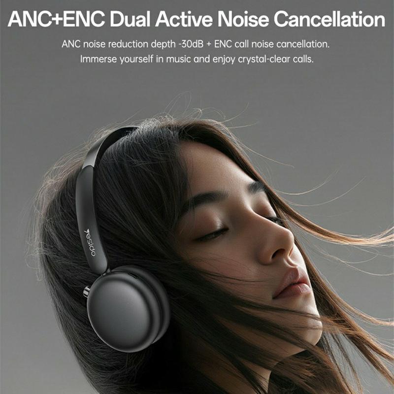 Yesido EP13 langattomat over-ear-kuulokkeet ANC+ENC-tekniikalla - 40 mm:n titaanielementit, 50 tunnin akku, BT 5.3, pelitila, kiertosäädin