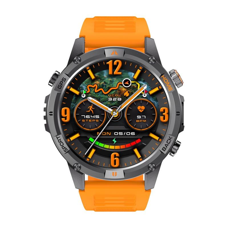 Ulkoseikkailuihin suunnitellussa kellossa on sisäänrakennettu taskulamppu, GPS-paikannus ja digitaalinen kompassi, joiden avulla voit navigoida poluilla ja seurata reittejäsi luotettavasti. Sen 580 mAh:n suurikapasiteettinen akku tarjoaa pitkäkestoisen suorituskyvyn, joka mahdollistaa jopa 40 päivän valmiusajan ja noin 7 päivän säännöllisen käytön. IP68-vesitiiviysluokituksen ansiosta se kestää sateen, roiskeet ja uinnin huoletta.