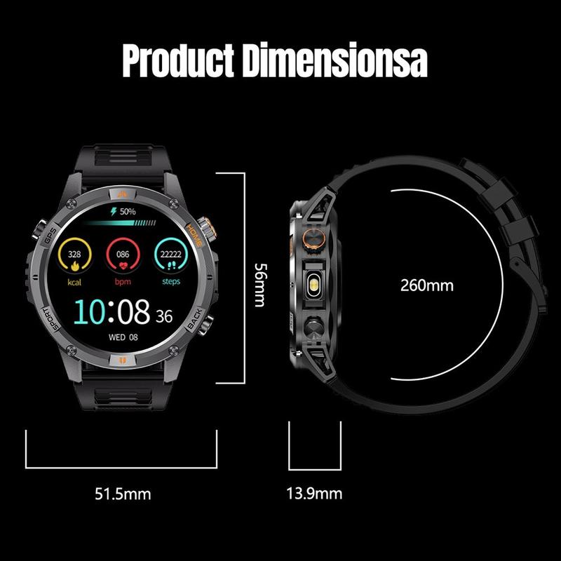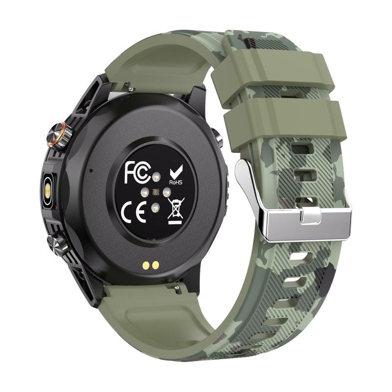 Ulkoseikkailuihin suunnitellussa kellossa on sisäänrakennettu taskulamppu, GPS-paikannus ja digitaalinen kompassi, joiden avulla voit navigoida poluilla ja seurata reittejäsi luottavaisesti. Sen 580 mAh:n suurikapasiteettinen akku tarjoaa pitkäkestoisen suorituskyvyn ja jopa 40 päivän valmiusajan ja noin 7 päivän säännöllisen käytön. IP68-vesitiiviysluokituksen ansiosta se kestää sateen, roiskeet ja uinnin huoletta.