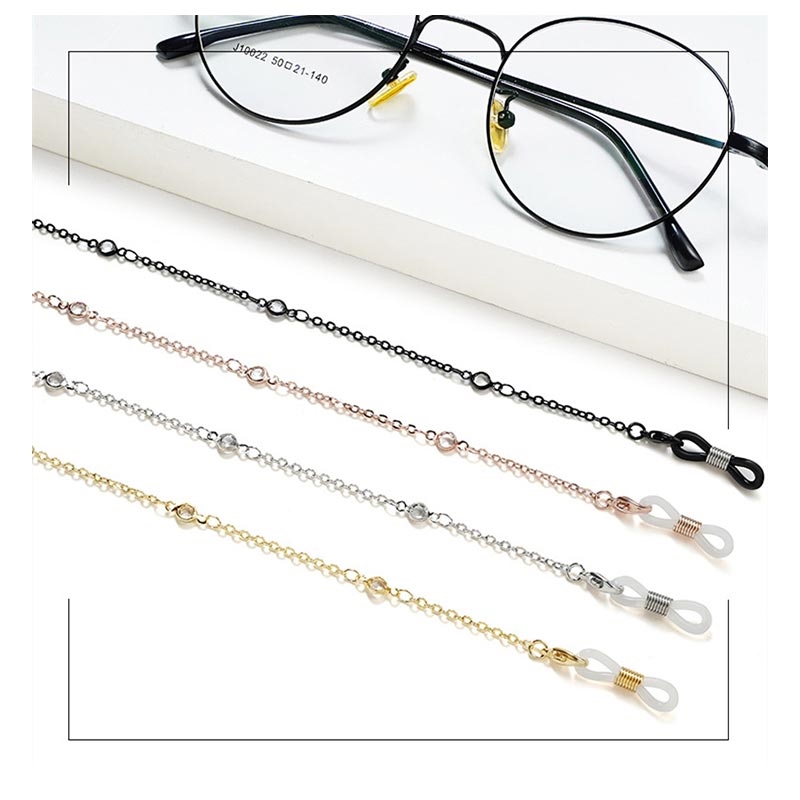 Pidä silmälasit lähellä ja tyyli kohdallaan. Tämä kevyt metalliseosketju kiinnittää lukulasit, aurinkolasit tai arkikehykset liukumattomilla silikonilenkillä ja toimii sitten tyylikkäänä kaulakoruna, kun linssit irtoavat kasvoiltasi. Liu'uta metallihelmisäätimiä, jotta voit kiinnittää ohimot tiukasti ja liikkua kädet vapaina töissä, urheilussa tai matkoilla ilman huolta tippumisesta.