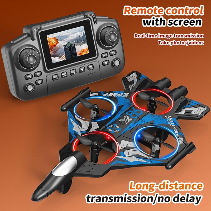 Integroitu 480P-kamera (interpoloitu 4K:ksi) tallentaa ilmakuvia ja -videoita, ja 30-50 metrin suorasiirtoalueen ansiosta voit tarkastella toimintaa suoraan kauko-ohjaimen sisäänrakennetulla näytöllä.