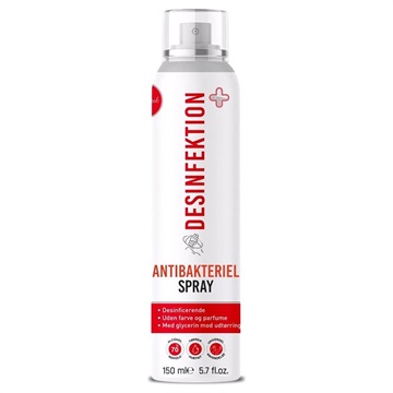Ota tämä desinfiointi- ja antibakteerinen suihke ja pääse eroon bakteereista ja muista mikrobeista. Se on tehokas ja yleinen hygieeninen suihke, ja sitä voidaan käyttää käsien ja suurimman osassa pintojen desinfioinissa. Antibakteerinen suihke perustuu 70% etanoliin ja sisältää glyseriiniä. Varmista aina, että puhdistettava pinta kestää alkoholia, ennen kuin suihkutat siihen.