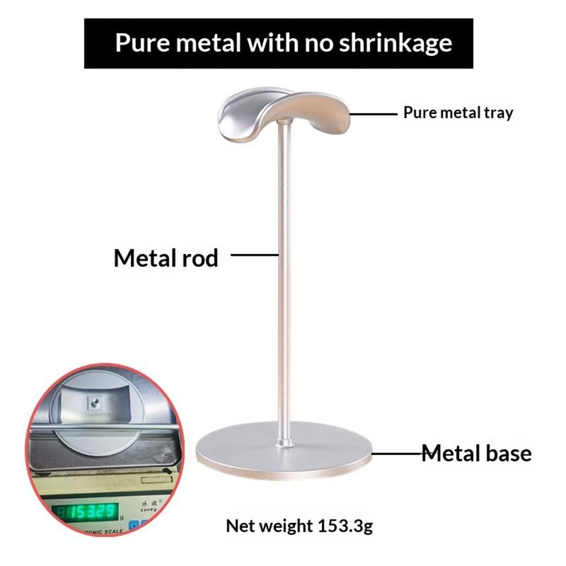 Tämä kuuloketeline on valmistettu korkealaatuisesta alumiiniseoksesta ja ABS-tukielementeistä, ja se on suunniteltu tarjoamaan vahva mutta kevyt rakenne. Materiaali kestää korroosiota ja päivittäistä kulutusta, mikä tekee siitä kestävän lisävarusteen säännölliseen käyttöön työpöydällä, hyllyllä tai työpisteellä. Sen vankka rakenne antaa telineelle myös korkealaatuisemman ulkonäön ja tuntuman verrattuna kevyempiin muovivaihtoehtoihin.