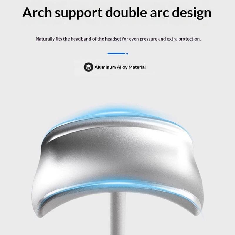 Kaksikaarinen pääntuki on muotoiltu seuraamaan kuulokkeiden pääpannan luonnollista kaarevuutta, mikä auttaa jakamaan painon tasaisemmin, kun kuulokkeet ovat telineellä. Tämä muotoilu voi auttaa vähentämään pääpantaan kohdistuvaa tarpeetonta painetta ja tukee kuulokkeiden pitkäaikaista käyttöä. Se on erityisen hyödyllinen over-ear-malleille, jotka hyötyvät vakaammasta ja tasapainoisemmasta säilytyksestä kuuntelukertojen välillä.