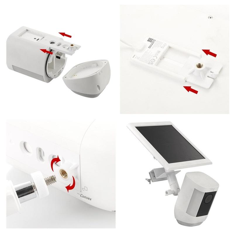 Vaihdettavilla sovitinjalustoilla varustettu kiinnike on yhteensopiva Arlo-, EufyCam- ja Ring-valmistajien suosittujen laitteiden kanssa, mukaan lukien kamerapäät ja yhteensopivat aurinkopaneelit. Tämä tekee siitä monipuolisen valinnan sekalaisiin tai päivitettyihin turvakokonaisuuksiin.