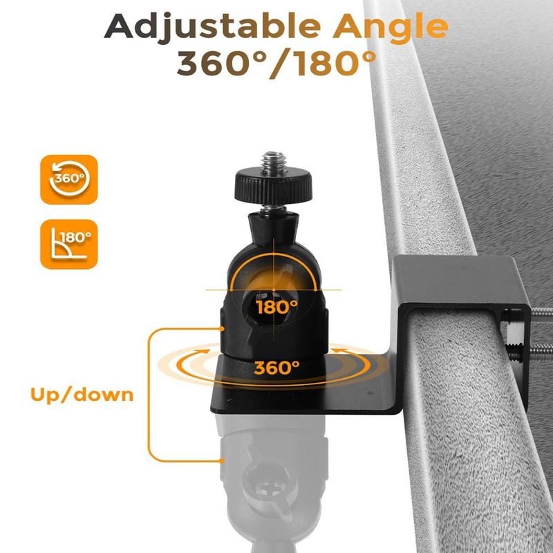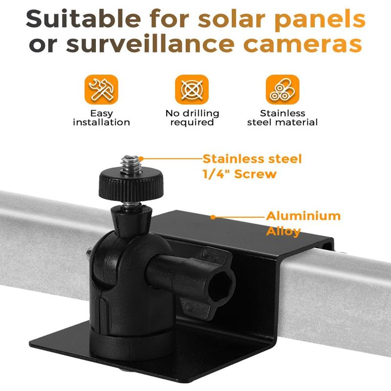 Yleiskäyttöinen turvakameran kaide- ja rännikiinnike - 360° säädettävä alumiini Pan-Tilt kiinnike 1/4 "ruuvin kanssa