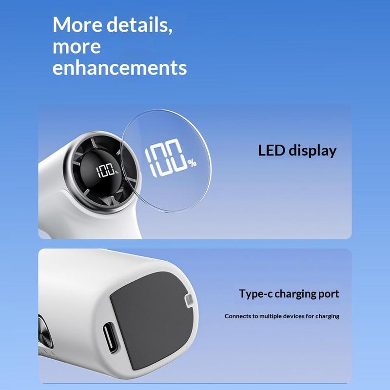 YS-G10:ssä on 100 säädettävää nopeustasoa, mikä antaa sinulle tarkemman hallinnan kuin tavallisissa matala-keskitaso-korkea-tuuletinmalleissa. Digitaalinen näyttö näyttää akkutason ja nopeusasetukset selvästi, joten voit säätää ilmavirtaa tarkemmin ja seurata jäljellä olevaa virtaa käytön aikana. Sisäänrakennettu 3000 mAh:n akku ja Type-C-lataus lisäävät päivittäistä mukavuutta, varsinkin kun haluat langattoman tuulettimen, joka on helppo ladata.