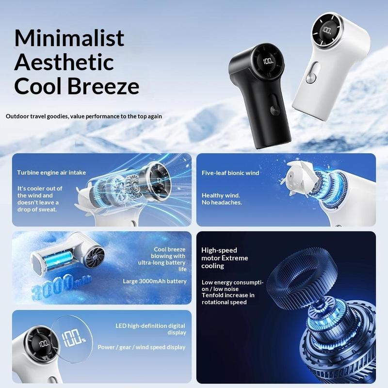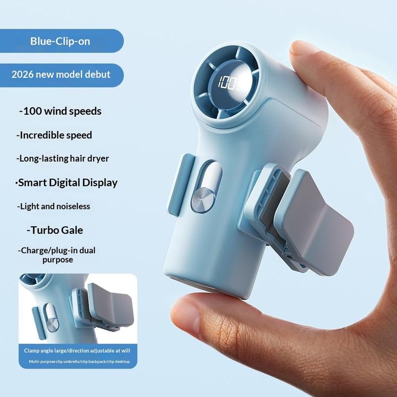 YS-G10 kiinnitettävä minikäsituuletin - ladattava tuuletin, jossa on 3000 mAh:n akku, digitaalinäyttö ja 100 nopeusasetusta
