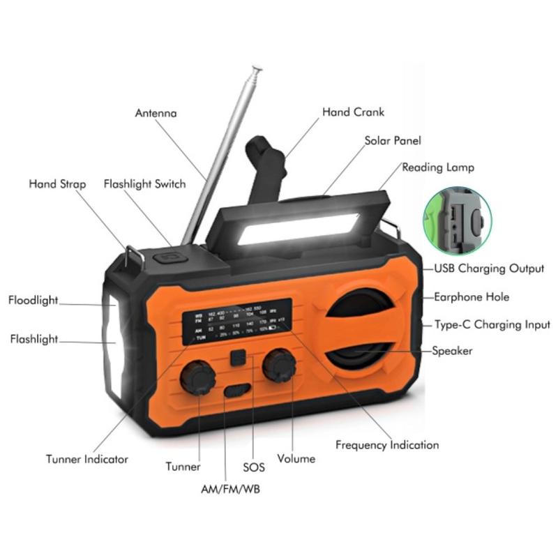 Varaudu sähkökatkoihin, retkeilyyn ja ulkoilun hätätilanteisiin YX328-hätäkäyttöisellä käsikrankkiradiosalamalla. Tämä monitoiminen selviytymislaite yhdistää aurinkovoimaisen laturin, manuaalisen käsikrankki-generaattorin, FM/AM/WB-radion, LED-taskulampun ja 4000mAh:n virtapankin yhteen kompaktissa laitteessa. Olitpa sitten ulkona tai sähkökatkoksen keskellä, se auttaa sinua pysymään ajan tasalla, valaistuna ja yhteydessä.