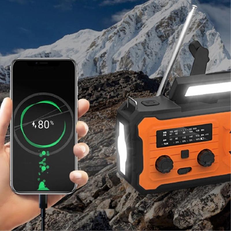 Varaudu sähkökatkoihin, retkeilyyn ja ulkoilun hätätilanteisiin YX328-hätäkäyttöisellä käsikrankkiradiosalamalla. Tämä monitoiminen selviytymislaite yhdistää aurinkovoimaisen laturin, manuaalisen käsikrankki-generaattorin, FM/AM/WB-radion, LED-taskulampun ja 4000mAh:n virtapankin yhteen kompaktissa laitteessa. Olitpa sitten ulkona tai sähkökatkoksen keskellä, se auttaa sinua pysymään ajan tasalla, valaistuna ja yhteydessä.